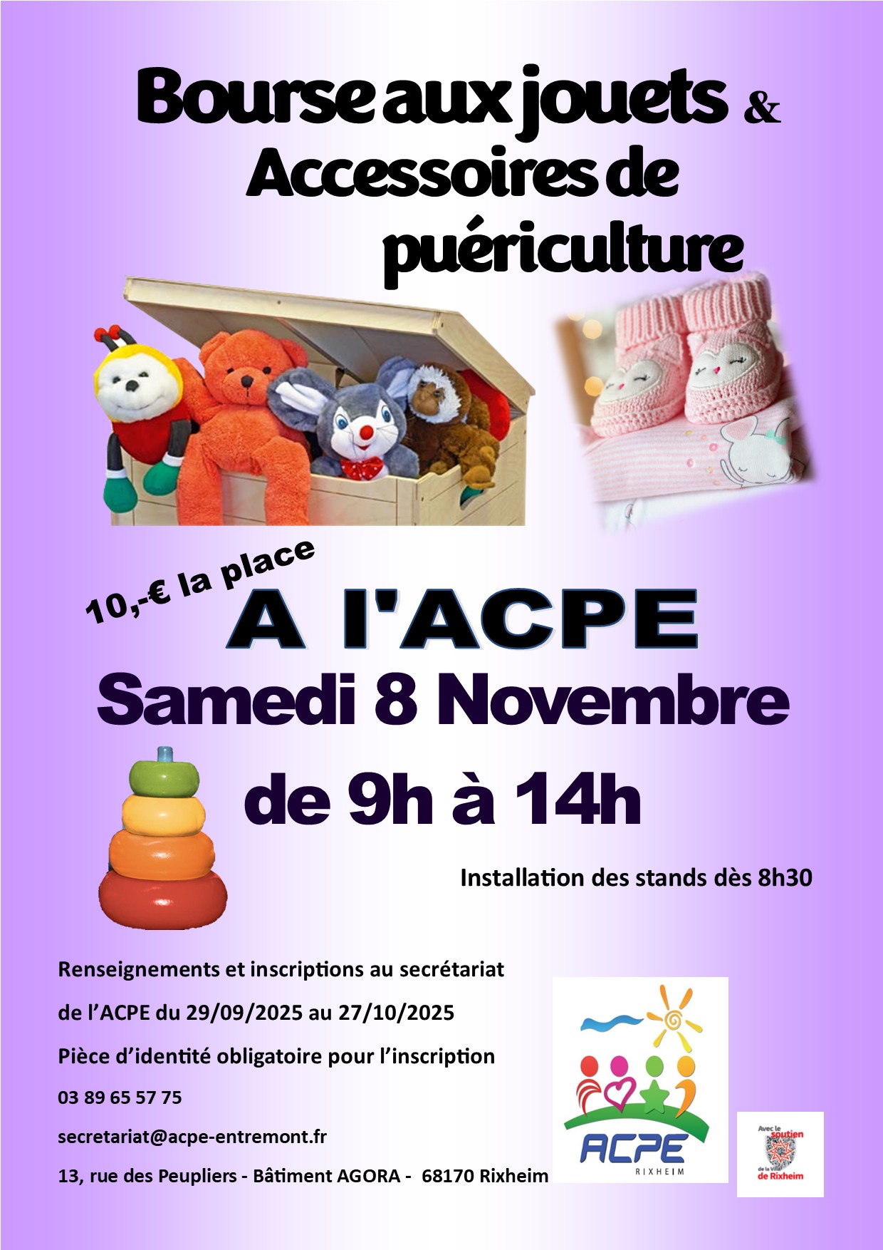21ème bourse aux jouets de l’ACPE : livres, BD, jeux vidéos et matériel de puériculture