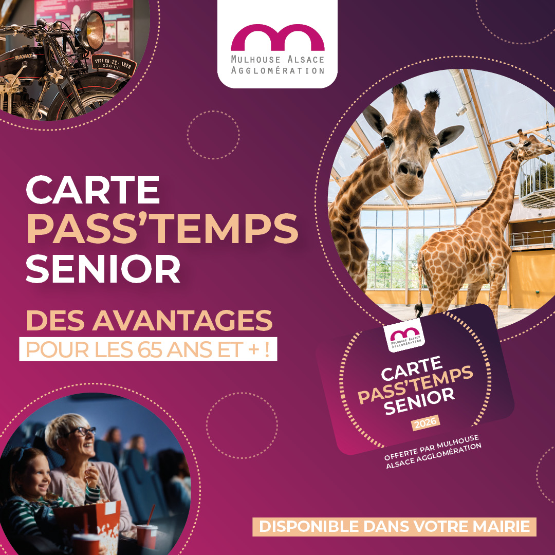 Les cartes Pass’Temps 2026 sont arrivées ! Elles sont gratuites, réservées aux rixheimois(es) âgés(es) de 65 ans et plus et permettent de bénéficier de nombreux avantages sur toute l’agglomération.