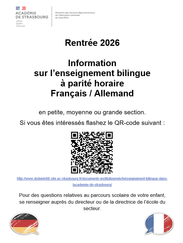 Vous souhaitez inscrire votre enfant dans un cursus bilingue français/allemand à la rentrée 2026 ?