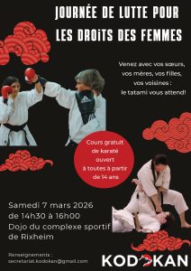 A l’occasion de la Journée internationale des droits des femmes, le Kodokan Est proposera un cours d’initiation au karaté ouvert à toutes (à partir de 14 ans).